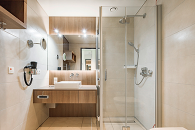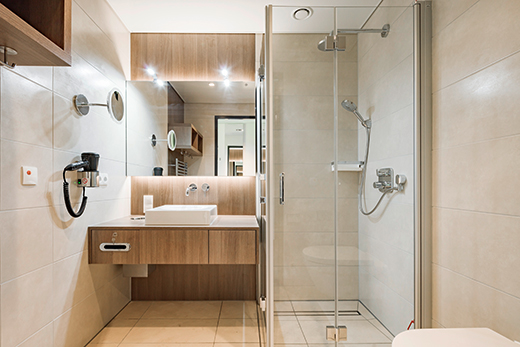 Das innenarchitektonische Konzept greift die wesentlichen Merkmale des architektonischen Konzeptes auf und trägt sie in die Ausgestaltung der Innenräume weiter. Zum einen wird die geschwungene Formsprache der Kubatur aufgenommen und zum anderen verstärken die Sichtverbindungen im Außen- und Innenraum den Ausdruck einer nicht stigmatisierenden Gesundheitseinrichtung. Im Hinblick auf die lange Verweildauer der Patienten, wurde sehr viel Wert auf den Innenausbau gelegt, der eine hohe Aufenthaltsqualität gewährleistet.
